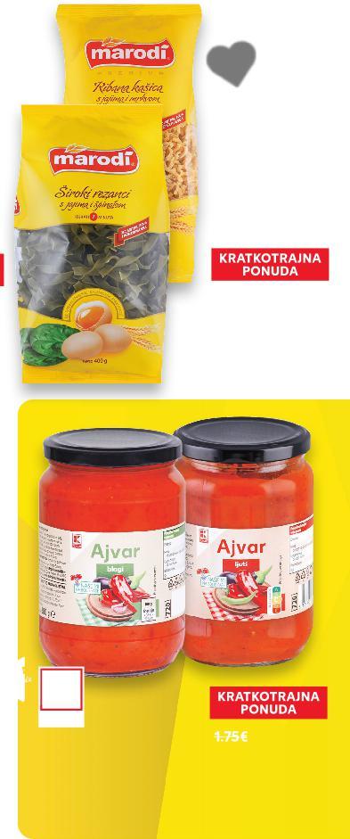 KRATKOTRAJNA PONUDA SUPERCIJENA ONUDA KRATKOTRAJNA PONUDA SUPERCIJENA ONUDA KRATKOTRAJNA PONUDA SUPERCIJENA ONUDA (=1 kg A 6,30/ KC 5,97€) PAŠKA SIRANA Skuta od kravljeg mlijeka 400 g (=1 kg A 47,48/ KC 44,98 kn) samo SUPER CIJENA SUPERCIJENA UPER-4% 4% 18.99kn 17.99kn 2.39€ 2.52€ SUPER CIJENA -35% 20.99kn 32.49kn 18.99kn -41% 41 2.52€ 4.31€ 2.79€ GAVRILOVIĆ Kobasica odabrane vrste trajni proizvod 330 g (=1 kg 90,88 kn) SUPER CIJENA-22% 29.99kn 38.80kn 5.15€ 3.98€ (=1 kg 12,06€) IZ RASHLADNE VITRINE IZ RASHLADNE VITRINE Istarski sir s tartufima tvrdi, punomasni 230 g (=1 kg 195,61 kn) SUPER CIJENA-18% 44.99kn 54.93kn 5.97€ 7.29€ (=1 kg 25,96€) KAUFLAND NISKA CIJENA IZ RASHLADNE VITRINE ZDENKA Rezani sir u listićima razne vrste 45% m.m. 150 g (=1 kg 79,94 kn) SUPER CIJENA-23% 11.99kn 15.75kn 1.59€ 2.09€ (=1 kg 10,61€) IZ RASHLADNE VITRINE ✓ sadrži manje od 1% mliječne masti ✓ ne sadrži ugljikohidrate EURO-MILK Dragec dimljeni sir 45% m.m. 225 g (=1 kg 79,96 kn) (=1 kg 10,61€) 4.25€ 2.39€ 17.99kn -43% 31.99kn KAUFLAND NISKA CIJENA RAVLIĆ Domaća mesnata slanina trajni proizvod cca 1200 g 1 kg VLIĆ KRATKOTRAJNA PONUDA samo SUPERCIJENA KRATK AJNA SUPER CIJENAONUDAUPERPONUD ONUDCIJE A TKOTRAJNA 0% UPERCIJENA TKOTR 68.99kn 9.16€ IZ RASHLADNE VITRINE IZ RASHLADNE VITRINE KAUFLAND NISKA CIJENA 9.28€ KRATKOTRAJNA PONUDA samo SUPERCIJENA KRATK AJNA SUPER CIJENAONUDAUPERPONUD ONUD TKOTRAJNA 7% UPERCIJENA OTR 69.89kn Janjetina trup s glavom 1 kg S USLUŽNOG PULTA (=1 kg A 9,29/ KC 8,40€) EURO-MILK Škripavac polutvrdi sir 300 g (=1 kg A 69,97/ KC 63,30 kn) S7-HR-KW52-LFT-AKTF_2_D-1030-04 7
