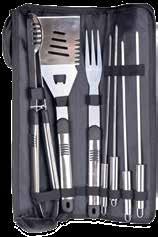 set 7/1 uključuje: hvataljke za roštiljanje, višenamjenski okretač, vilicu s 3 zupca i 4 igle za roštiljanje