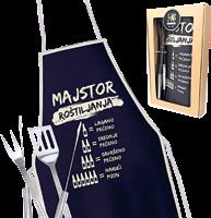 uključuje: inox pribor 3kom/set, pregaču s natpisom - majstor roštiljanja