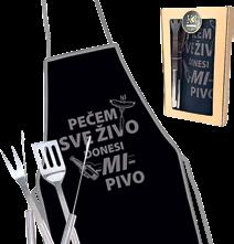 uključuje: inox pribor 3kom/set, pregaču s natpisom - pečem sve živo