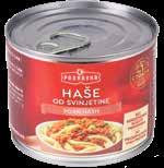 Pašteta čajna ili jetrena 100g Gavrilović (1kg=10,50EUR; 1kg=79,11kn) EUR kn Birajte mudro! 1,05 7,91 Pašteta kokošja, kokošja slavonska ili junior kokošja 95g Argeta (1kg=12,53EUR; 1kg=94,41kn) EUR kn 1,26EUR 9,49kn 1,19 8,97 Haše od svinjetine ili govedine 200g Podravka (1kg=8,45EUR; 1kg=63,67kn) EUR kn 1,99EUR 14,99kn 1,69 12,73 EUR kn 1,95EUR 14,69kn 1,69 12,73 Oslić bez glave 400g Ledo (1kg=7,38EUR; 1kg=55,60kn) EUR kn Birajte mudro! 2,95 22,23 Tuna komadići usitnjeni 160g Eva (1kg=8,44EUR; 1kg=63,59kn) EUR kn -36% 2,12EUR 15,97kn 1,35 10,17 Sardina u ulju 125g Giana (1kg=6,00EUR; 1kg=45,21kn) EUR kn Birajte mudro! 0,75 5,65