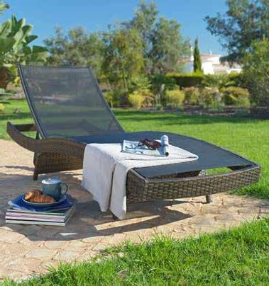 Ležaljka Boracay, čelična konstrukcija, crna tekstilen tkanina i pvc pletivo u dvije boje: mocca smeđa i prošarano siva. Mogućnost podešavanja naslona za leđa, dim.: 203x38x69 cm, nosivost 120 kg. (24490021/04,14)
