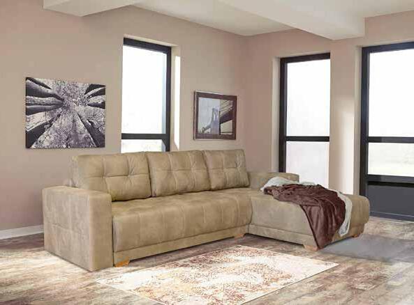 Sjedeća garnitura Mia , lijevi ili desni kut, boja: bež, dim.: 277x185 cm, ležaj dim.: 150x232 cm i sanduk za posteljinu uključeni u cijenu. (00340025/01-02)