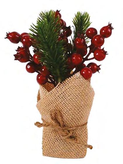 DEKORACIJA POISENTIA BOROVINA, JUTA crvena, bijela 22 cm cijena za komad