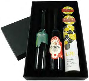 brachia premium maslinovo ulje 100 ml, brachia aromatizirano maslinovo ulje s ružmarinom 100 ml, uje selekcija pasta od crnih maslina 190 g, uje selekcija pasta od zelenih maslina 190 g, uje selekcija zelene masline 190 g, čašica za degustaciju maslinovog ulja