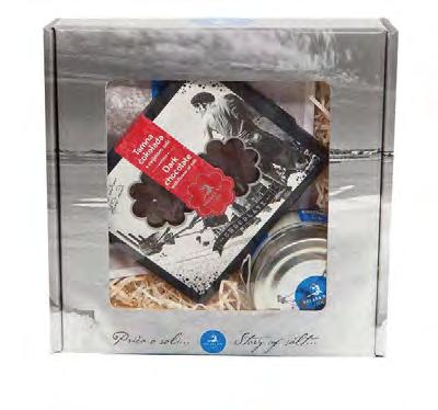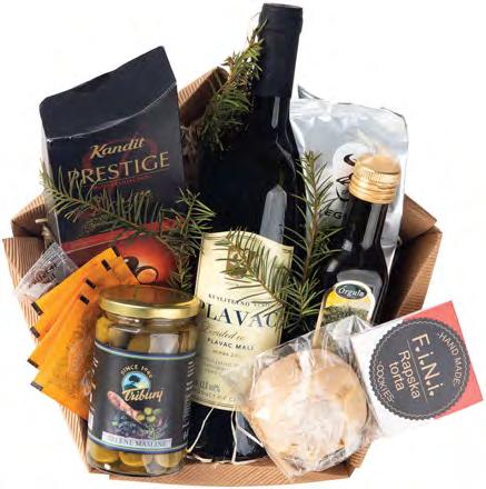 med cvjetni dalmatinski 450 g, pasta od zelenih maslina 165 g, kapari u octu 195 g, masline zelene s paprikom 370 g, fileti slanih inćuna u maslinovom ulju 212 g, maslinovo ulje ekstra djevičansko 0,25 l specijal, plavac lučić 0,75 l