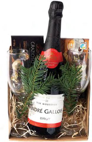 0,75 l Andre Gallois Brut šampanjac čaša za šampanjac (2 komada) 80 g čokolada mattre truffout graziozo (2 komada) čokoladne praline (4 komada)