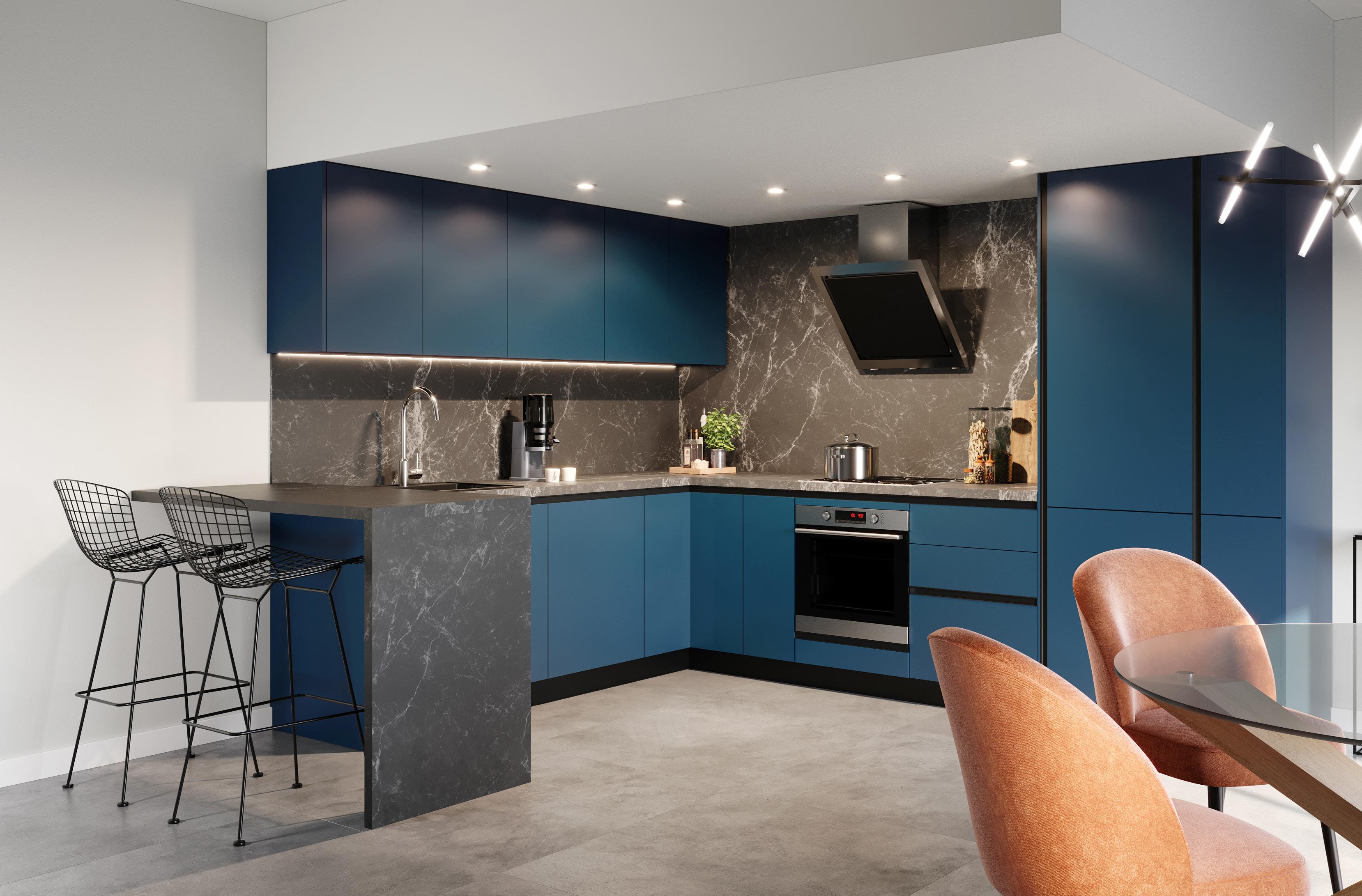 *Prikazana cijena odnosi se na osnovni sastav kuhinje Evolution u dekoru Dark Blue XT. Cijena je izračunata za zonu 1 (do 15 km od salona) te uključuje drveni dio kuhinje, izmjeru, dostavu i montažu. Popust se obračunava uz min. potrošeni iznos od 20,00 €.