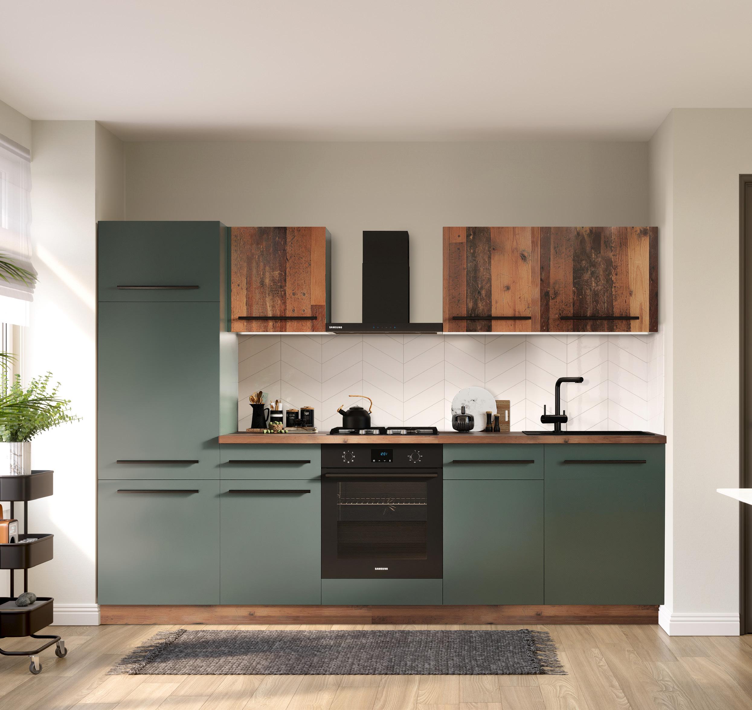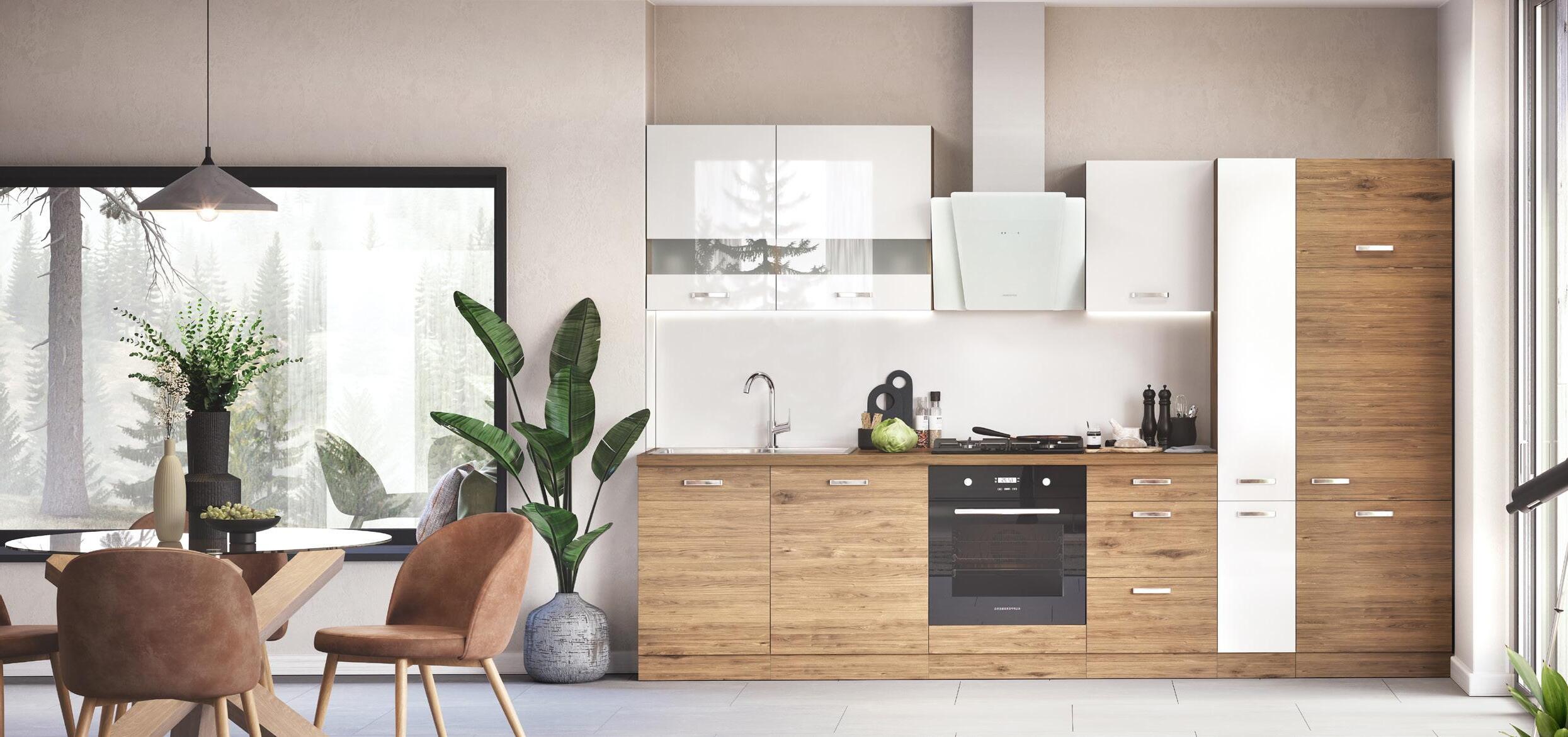 *Prikazana cijena odnosi se na osnovni sastav kuhinje Espirit u dekorima Caramel + Orah Natur. Cijena je izračunata za zonu 1 (do 15 km od salona) te uključuje drveni dio kuhinje, izmjeru, dostavu i montažu. Popust se obračunava uz min. potrošeni iznos od 20,00 €.