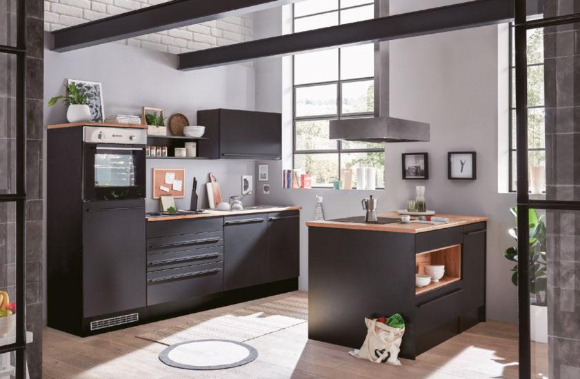 KUHINJSKI BLOK BEZ UREĐAJA „JAZZ 6“, mat crna/Lanzelot hrast, ne uklj. el. uređaje i sudoper, Š/V/D: cca. 260/200/60cm 529,56 € 3.990,KUHINJSKI OTOK „JAZZ“, cca. 140/90/90cm 529,56 € 3.990,- (12790022/03,05)
