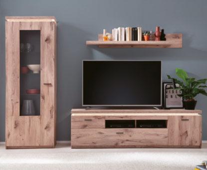 KOMODA „STRADA“, 3-krilna, Wotan hrast/dekor tamnog betona, 1 ladica, Š/V/D: cca. 149/86/41cm 1.190,- 157,94 € VITRINA , 3-krilna, stakleni umetak, cca. 93/194/41cm 1.890,- 250,85 € (18030274/05-06)