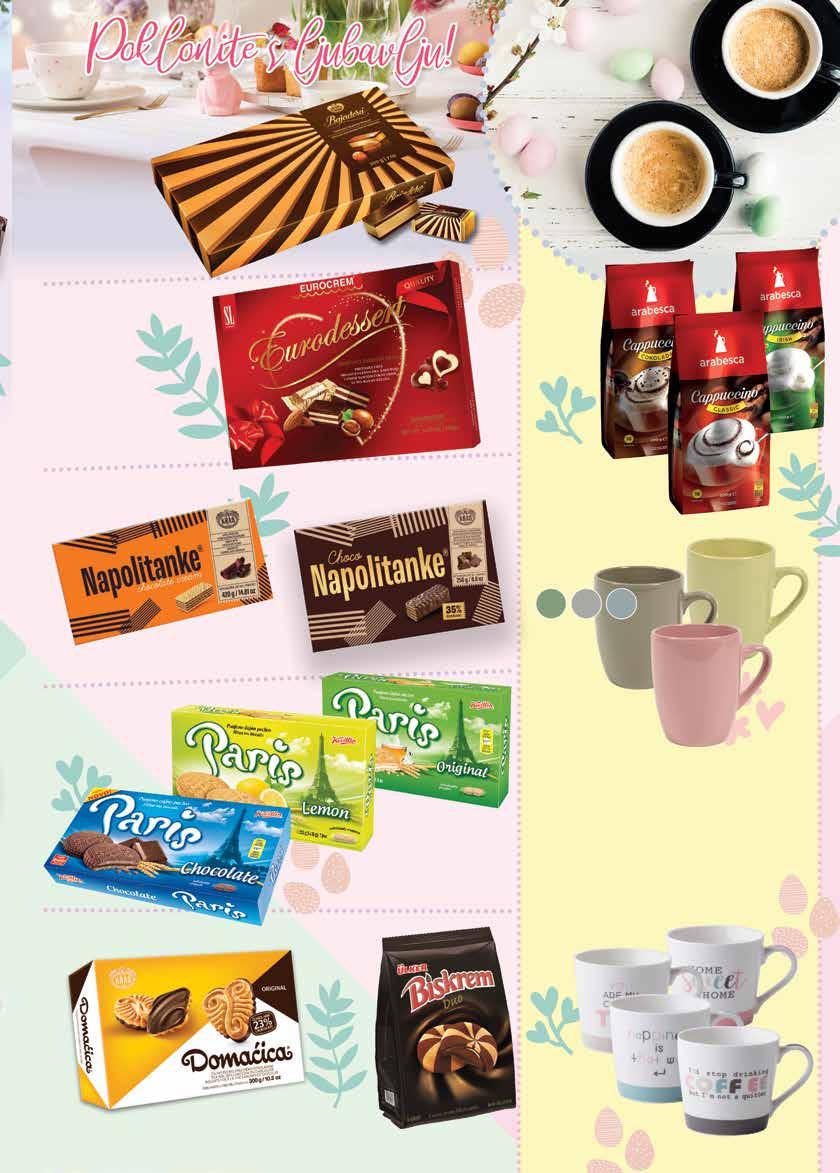 06.04.12.04.2023. LM 14/2023 1 EUR = 7,5345kn 3458 kn 459 EUR Uskrsni poklon paket Filir, 504 g 1 kg = 4,94 EUR / 37,22 kn -16% 1876 kn 249 EUR 299 EUR 2253 kn Uskrsni čokoladni zec Cosmo, 60 g 1 kg = 9,83 EUR / 74,06 kn 445 kn 059 EUR IZ PONUDE IZDVAJAMO SADRŽAJ PAKETA: •BEBETO SPAGHETTI GUMENI BOMBONI 80g •PAPITA MILK CREAM 33g •BOBI FLIPS 90g •BOBI STIX KETCHUP 35g •SOLEN JINGLE 66g •SOKIĆ JOY KIDS ZOO 200ml Pečena plećka u mrežici Celjske mesnine, VP 1 kg Pečena šunka u mrežici Celjske mesnine, VP 1 kg 3986 kn 529 EUR 1499 kn 199 EUR 4212 kn 559 EUR Svježa jaja M razred NTL, 10 kom 1 kom = 0,20 EUR / 1,51 kn Hren Podravka, 200 g 1 kg = 7,45 EUR / 56,13 kn 1123 kn 149 EUR Rotkvica 1 vezica Mladi luk 1 kg 1801 kn 239 EUR 369 kn 049 EUR Vino kvalitetno Graševina Kutjevo, 1 l