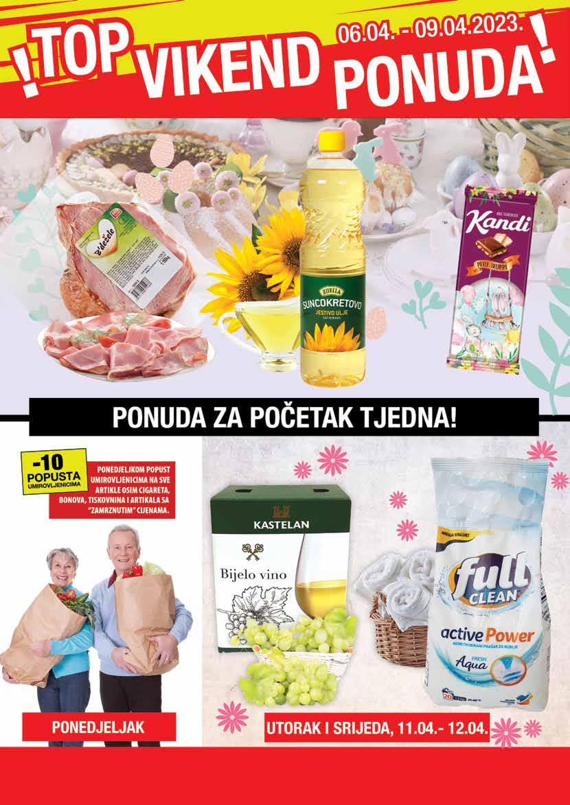 I MARKETIMA: Krapina, Magistratska 2; Zagreb, Bužanova 36; Varaždin, Krešimira Filića 39; Stjepana Radića 34, Vidovec, vrijedi od 06.04. - 12.04.2023. ili do isteka zaliha. Cijene su izražene u kunama i eurima (1 EUR = 7,5345kn). Iskazani postotak sniženja je minimalan,a može biti i veći. Za eventualne tiskarske pogreške ne preuzimamo odgovornost. Fotografije ne moraju u potpunosti odgovarati stvarnom izgledu proizvoda. Moguće su pogreške u objavljenom materijalu. Kupci se pozivaju da točne cijene provjere kod trgovaca. Zbog ograničenosti