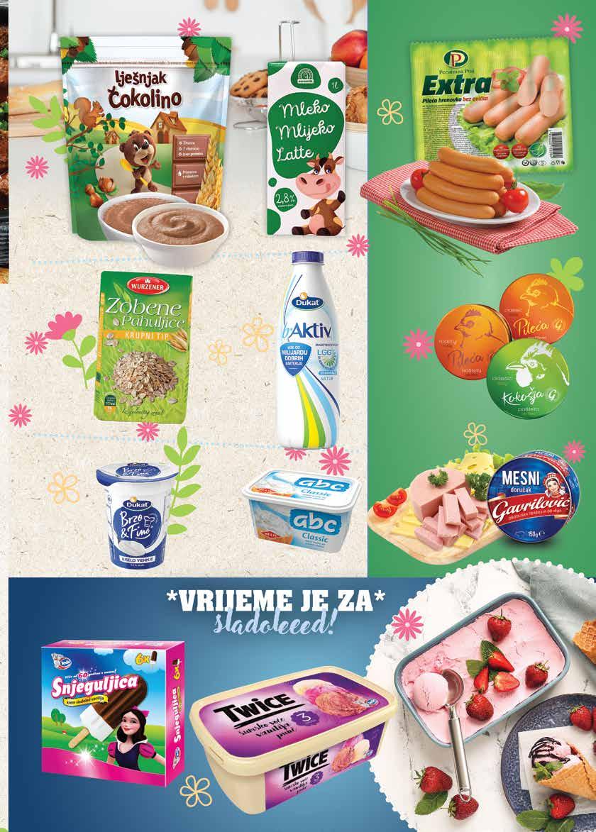 16 17 www.ntl.hr www.ntl.hr OTUNZRMS SMRZNUTO OTUNZRMS SMRZNUTO OTUNZRMS SMRZNUTO MESNICA Uvijek svježe, uvijek dobro VRIJEDI DO 09.04. Vrijedi u prodajnim mjestima: Soblinec, Soblinečka 55; Duga Resa, Gajeva 1; Krapina, F. Galovića 11A. Panirani pileći dinosauri Cekin, 600 g 1 kg = 8,48 EUR / 63,89 kn Panirani pileći medaljoni Cekin, 660 g 1 kg = 7,71 EUR / 58,09 kn 1123 kn 149 EUR Pileća hrenovka Extra Perutnina 1 kg Mesni doručak Gavrilović, 150 g 1 kg = 9,93 EUR / 74,82 kn Kokošja, pileća pašteta, pileća Roasty Gavrilović, 100 g 1 kg = 9,90 EUR / 74,59 kn 1951 kn -21% 259 EUR 332 EUR 2501 kn 746 kn -21% 099 EUR 126 EUR 949 kn 2856 kn 379 EUR 2780 kn 369 EUR 2599 kn 345 EUR 3308 kn 439 EUR 2780 kn 369 EUR 5643 kn 749 EUR 4513 kn 599 EUR Pureće mljeveno meso* Vindon, svježe, 500 g 1 kg = 7,58 EUR / 57,11 kn Svinjski but BK 1 kg Svinjski vrat SK 1 kg Juneća lopatica BK 1 kg Teleća potrbušina s grudima i rebrima SK 1 kg *Vrijedi samo u trgovinama s asortimanom svježeg mesa. Kiselo vrhnje 12% m.m. Dukat, 200 g 1 kg = 3,65 EUR / 27,50 kn Ćevapčići grill Pik, 600 g 1 kg = 6,15 EUR / 46,34 kn Miješano mljeveno meso Pik, 540 g 1 kg = 6,39 EUR / 48,15 kn Sladoled Snjeguljica Ledo, 390 g (6 x 65 g) 1 kg = 9,21 EUR / 69,39 kn 1 kom = 0,60 EUR / 4,52 kn Sladoled Twice jagoda - vanilija - čokolada Ledo, 1,7 1 = 2,29 EUR / 17,25 kn Krem sir ABC Belje, 200 g 1 kg = 9,75 EUR / 73,46 kn Jogurt b Aktiv LGG Natur Dukat, 1 kg 1650 kn -13% 219 EUR 252 EUR 1899 kn 550 kn 073 EUR IZ PONUDE IZDVAJAMO 1469 kn 195 EUR IZ PONUDE IZDVAJAMO 2705 kn -25% 359 EUR 479 EUR 3609 kn 2931 kn -18% 389 EUR 479 EUR 3609 kn Zobene pahuljice Wurzener, 500 g 1 kg = 2,38 EUR / 17,93 kn Lješnjak Čokolino Podravka, 1 kg 897 kn -25% 119 EUR 159 EUR 1198 kn 3835 kn -10% 509 EUR 569 EUR 4287 kn 4513 kn -30% 599 EUR 863 EUR 6502 kn Napravi fine pureće okruglice za ručak! Mlijeko trajno 2,8% m.m. Euromilk, 1 l 693 kn 092 EUR IZ PONUDE IZDVAJAMO