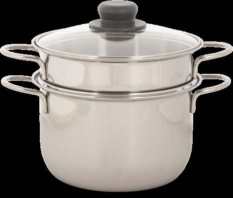 Od materijala nehrđajući čelik, sadrži trostruko dno, 3 ventila, pogodan za sve vrste ploča za kuhanje, uključujući i indukciju.