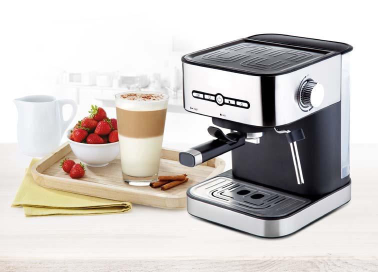 Može se koristiti mljevena kava ili kapsule, sadrži uklonjivi spremnik za vodu, uklonjivu i perivu posudu za kapanje, parnu cijev za cappuccino, pumpu od 19 bara, snaga 1050 W.