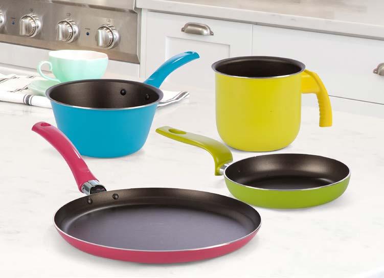 Od materijala aluminij s neljepljivim premazom, razne vrste tava i lonaca, razne boje.