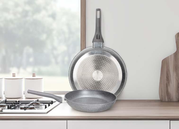 Od materijala aluminij, sadrži ILAG GRANITEC premaz protiv ljepljenja, pogodne za sve vrste ploča za kuhanje, uključujući i indukciju, razne boje.
