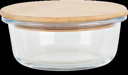 STAKLENA POSUDA ZA HRANU 370 ML* Sadrži poklopac od bambusa, dimenzije 12,9 x 5,2 cm.