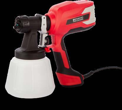 Sadrži spremnik od 1200 ml, mekanu neklizajuću ručku, za emajl, sjajne i prozirne lakove za impregnaciju, snaga 450 W, maksimalan protok 900 ml/min.