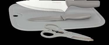 U setu se nalazi višenamjenski nož 23,5 cm, kuhinjski nož 32,5 cm, daska za rezanje 34,5 x 25 cm i škarice 21,5 cm, oštrice od materijala nehrđajući čelik. 49,99 za set 69,99 (6,63 € 9,29 €)