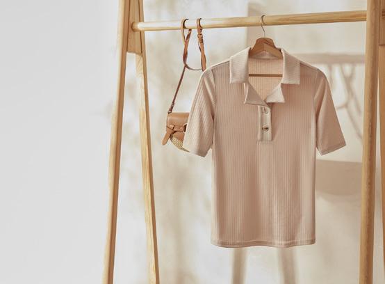 ženska, od elastičnog rebrastog materijala, s ovratnikom i gumbima na izrezu, jednobojna, veličine: 36-44