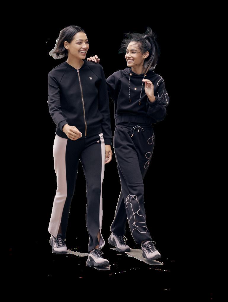 ženski, s bočnim elementima u kontrastnoj boji i prorezima na dnu nogavica, veličine: XS-XL
