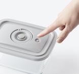 staklene, s poklopcem sa zatvaračem i indikatorom datuma, omogućuju produljenu svježinu hrane, u kompletu s pumpom, prikladne za korištenje u pećnici i mikrovalnoj pećnici te za pranje u perilici posuđa (s otklopljenim poklopcem), dimenzije: 14,2 x 10 x 7,2 cm, 19,7 x 14 x 9,8 cm