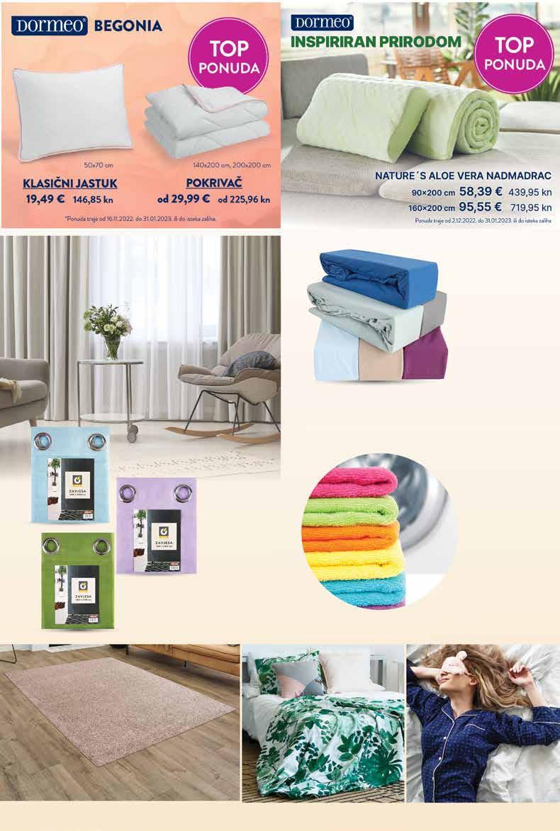Tepih • dostupan u više boja • dimenzije 80x150 cm Zavjesa • dostupna u više boja • dimenzije 140x240 cm Ručnik • dostupan u više boja • dimenzije 30x50 cm Plahta jersey • 100% pamuk • sa gumicom • jednostavno održavanje • dostupna u više boja • dimenzije cca 90x200 cm • dimenzije 115x170 cm 22,56 € 169,98 kn • dimenzije 50x90 cm 2,65 € 19,97 kn • dimenzije 70x130 cm 5,31 € 40,01 kn • dimenzije cca 185x200 cm 8,89 € 66,98 kn • dimenzije cca 140x200 cm 7,30 € 55,00 kn PIDŽAME odabrani artikli do -40% POSTELJINA odabrani artikli -40% 0.80 € 6.03 kn 5.31 € 40.01 kn 14.60 € 110.00 kn 5.97 € 44.98 kn A B C A B A B A B C A B C A B C A B C A B C •100% PAMUK • 1 KUMAP%00 P%001 A MUK Fotografije proizvoda ne moraju u potpunosti odgovarati stvarnom izgledu proizvoda. Kupnja je moguća samo u količinama primjerenim za kućanstvo. Sve navedene cijene izražene su u eurima i kunama s PDV-om. Fiksni tečaj konverzije €/kn: 7,53450. Ne odgovaramo za tiskarske pogreške. 24