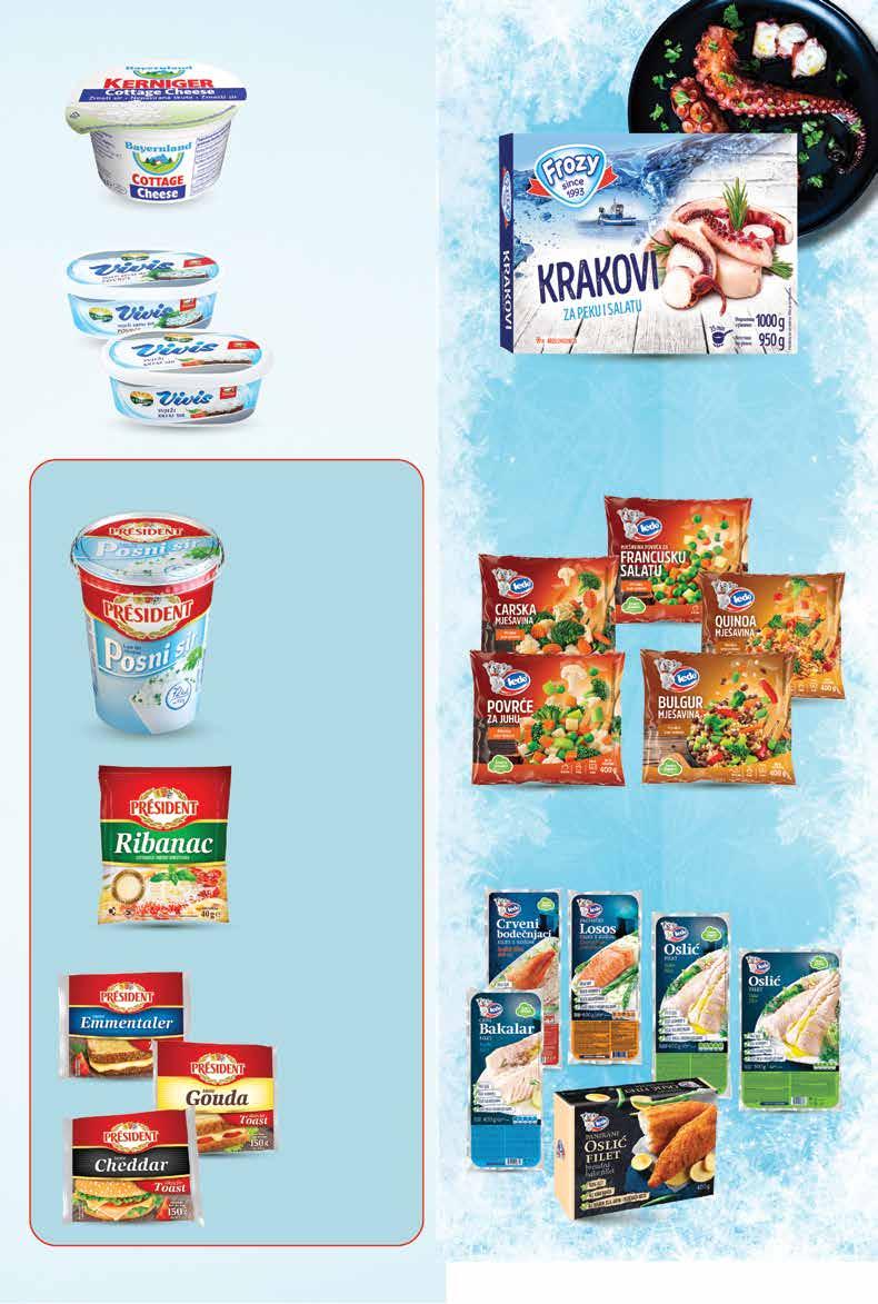 PRESIDENT Svježi sir posni 500 g PRESIDENT Sir Toast razne vrste 150 g `Z BREGOV VIVIS Svježi krem sir za mazanje natur ili sa povrćem 200 g PRESIDENT Ribanac svježe ribani sir 35% m.m. 40 g 1.69 € 12.73 kn 1 kg = 3,38 € / 25,46 kn LEDO Mješavina povrća razne vrste 400 g -20% LEDO Riblji fileti odabrane vrste 400 - 800 g -20% 1.59 € 11.98 kn 1 kg = 7,95 € / 59,90 kn 1.05 € 7.91 kn 1 kg = 26,25 € / 197,75 kn 1.30 € 9.79 kn 1 kg = 8,67 € / 65,27 kn FROZY Krakovi za peku i salatu smrznuto 1000 g KERNIGER Svježi zrnati sir bogat izvor kalcija 20% m.m. 200 g 1.45 € 10.93 kn 1 kg = 7,25 € / 54,65 kn Štedi više! Plati manje! HIT cijena! 5.95 € 44.83 kn 50% sniženoSuper svježa prilika! 1 kg Fotografije proizvoda ne moraju u potpunosti odgovarati stvarnom izgledu proizvoda. Kupnja je moguća samo u količinama primjerenim za kućanstvo. Sve navedene cijene izražene su u eurima i kunama s PDV-om. Fiksni tečaj konverzije €/kn: 7,53450. Ne odgovaramo za tiskarske pogreške. 15