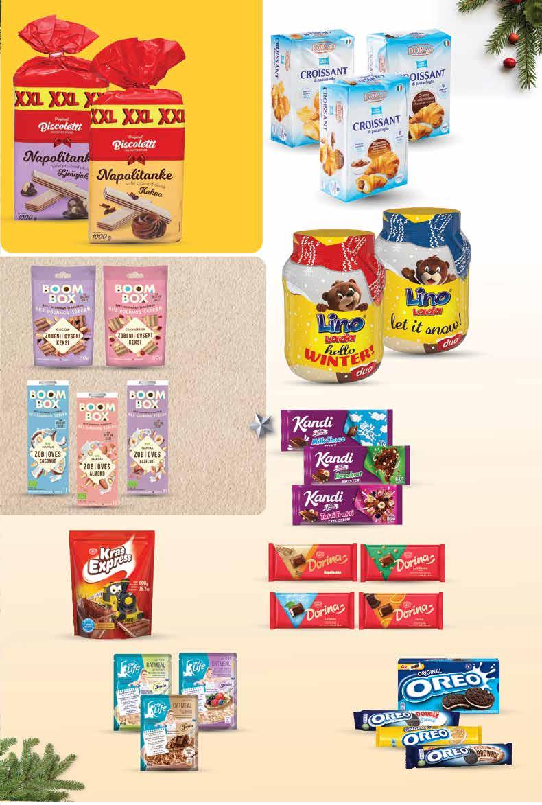 DORINA Čokolada odabrane vrste 95 - 105 g 1 kg = 66,57 - 73,58 kn 1 kg = 8,86 - 9,79 € DORA3 Croissant razne vrste 300 g 1 kg = 43,30 kn 1 kg = 5,73 € BISCOLETTI Napolitanke kakao ili lješnjak XXL 1 kg OREO Keks razne vrste 154 - 176 g 1 kg = 51,08 - 58,38 kn 1 kg = 6,76 - 7,73 € BOOM BOX Keksi razne vrste 200 g 1 kg = 74,95 kn 1 kg = 9,95 € MY LIFE Zobena kaša razne vrste 65 g 1 kg = 61,38 kn 1 kg = 8,15 € KANDI Čokolada mliječna, tutti frutti ili hazelnus 210 - 250 g 1 kg = 59,96 - 71,38 kn 1 kg = 7,96 - 9,48 € BOOM BOX Napitak biljni razne vrste 1 l 00,99 1499 kn 1,99 € 00,99 1299 kn 1,72 € 00,99 1499 kn 1,99 € 00,99 699 kn 0,93 € 00,99 1599 kn 2,12 € 00,99 1799 kn 2,39 € LINO LADA Namaz duo 900 g 1 kg = 44,43 kn 1 kg = 5,90 € 00,99 3999 kn 5,31 € SUPER PONUDA! 899 kn 1,19 € -29% 12,69 kn 1,68 € SUPER PONUDA! 399 kn 0,53 € -20% 4,99 kn 0,66 € 900 g KRAŠ EXPRESS Kakao napitak s vitaminima i mineralima 800 g 1 kg = 33,74 kn 1 kg = 4,48 € 00,99 2699 kn 3,58 € 800 g 1 kg Fotografije proizvoda ne moraju u potpunosti odgovarati stvarnom izgledu proizvoda. Kupnja je moguća samo u količinama primjerenim za kućanstvo. Sve navedene cijene izražene su u kunama i eurima s PDV-om. Fiksni tečaj konverzije €/kn: 7,53450. Ne odgovaramo za tiskarske pogreške. 25