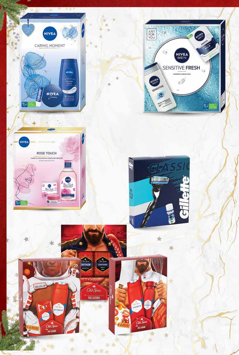 NIVEA Poklon paket za žene Krema za lice i micelarna voda 50 ml i 200 ml OLD SPICE CHEF, DARK CAPTAIN ILI ASTRO Poklon paket za muškarce Gel za tuširanje i dezodorans 250 ml i 150 ml ili Gel za tuširanje i stick 250 ml i 50 ml NIVEA Poklon paket za muškarce Balzam za njegu nakon brijanja i pjena za brijanje 100 ml i 200 ml NIVEA Poklon paket Gel za tuširanje, krema i Labello 250 ml, 75 ml i 4,8 g GILLETTE Poklon paket za muškarce Britvica i pjena za brijanje 100 ml 3499 kn 4,64 € 4699 kn 6,24 € 3999 kn 5,31 € 6599 kn 8,76 € 8999 kn 11,94 € Fotografije proizvoda ne moraju u potpunosti odgovarati stvarnom izgledu proizvoda. Kupnja je moguća samo u količinama primjerenim za kućanstvo. Sve navedene cijene izražene su u kunama i eurima s PDV-om. Fiksni tečaj konverzije €/kn: 7,53450. Ne odgovaramo za tiskarske pogreške. 32