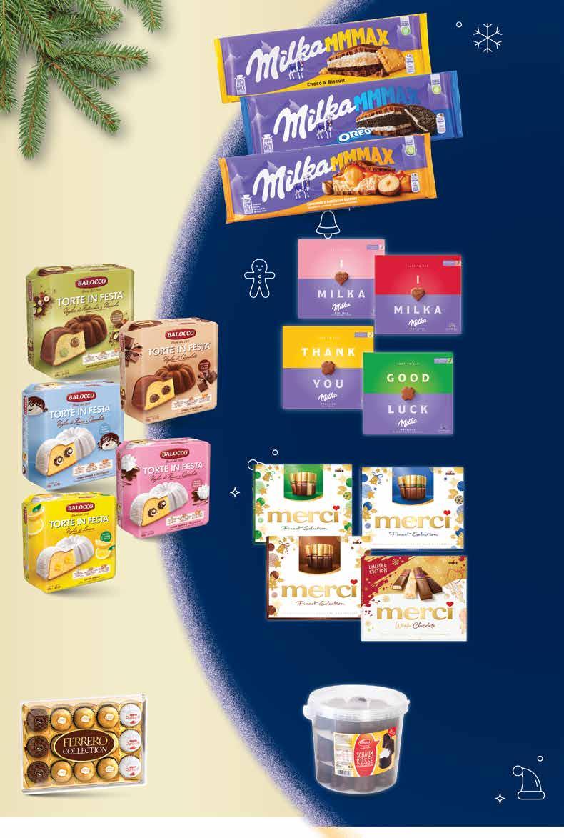 BALOCCO Torte mekani biskvit punjen raznim kremama 400 g 1 kg = 82,48 kn 1 kg = 10,95 € NAWARRA Pjenasti desert 650 g 1 kg = 50,75 kn 1 kg = 6,74 € MERCI Bombonijera razne vrste 210 - 250 g 1 kg = 119,96 - 142,81 kn 1 kg = 15,92 - 18,95 € FERRERO COLLECTION Praline 172 g 1 kg = 232,50 kn 1 kg = 30,87 € 00,99 3299 kn 4,38 € 00,99 3299 kn 4,38 € SUPER PONUDA! 3999 kn 5,31 € -20% 49,99 kn 6,63 € 2999 kn 3,98 € MILKA Praline odabrane vrste 110 g 1 kg = 163,55 kn 1 kg = 21,73 € SUPER PONUDA! 1799 kn 2,39 € -28% 24,99 kn 3,32 € MILKA Čokolada Oreo, toffee nuts ili choco&biscuit 300 g 1 kg = 59,97 kn 1 kg = 7,97 € SUPER PONUDA! 1799 kn 2,39 € D O L A Z I Fotografije proizvoda ne moraju u potpunosti odgovarati stvarnom izgledu proizvoda. Kupnja je moguća samo u količinama primjerenim za kućanstvo. Sve navedene cijene izražene su u kunama i eurima s PDV-om. Fiksni tečaj konverzije €/kn: 7,53450. Ne odgovaramo za tiskarske pogreške. 4