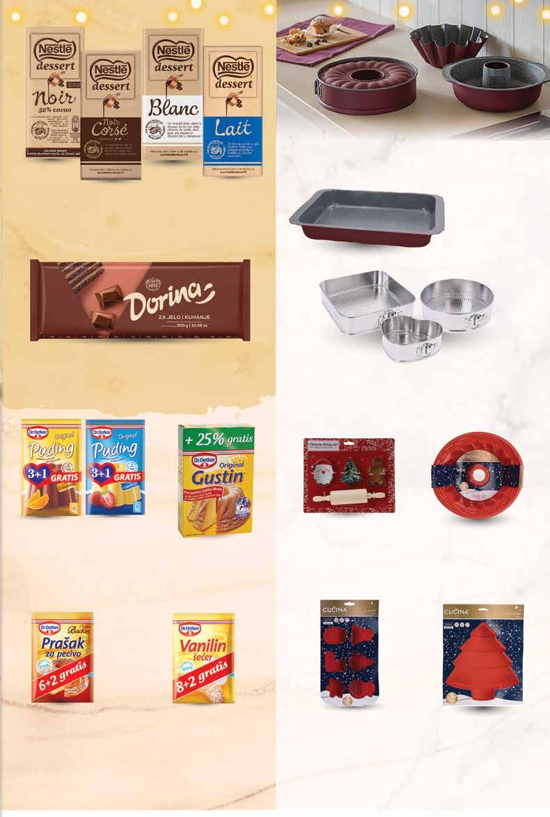 DORINA Čokolada za kuhanje 300 g 1 kg = 46,63 kn 1 kg = 6,20 € DR.OETKER Gustin +25% 250 g 1 kg = 49,95 kn 1 kg = 6,65 € DR.OETKER Puding vanilija ili čokolada 152 - 196 g 1 kg = 74,76 - 99,91 kn 1 kg = 9,93 - 13,27 € TOGNANA Kalup za tortu • s nastavkom za kuglof • materijal: čelik TOGNANA Kalup za pečenje • materijal: čelik NESTLE Čokolada za kuhanje odabrane vrste 170 - 205 g 1 kg = 82,88 - 99,94 kn 1 kg = 10,98 - 13,24 € Set kalupa za tortu • materijal: nehrđajući čelik • 3 komada u setu • kvadratni dimenzije 26x26x7,5 cm, okrugli 25x7,5 cm i u obliku srca 23x23x7,5 cm Božićni set za pečenje kolača • 4 komada 999 kn 1,33 € 00,99 1699 kn 2,25€ 00,99 1399 kn 1,86 € 00,00 7999 kn 10,62€ Kalup za kuglof • silikonski • 24 cm Kalup za kolače • u obliku božićnog drvca • silikonski Kalupi za kolače • u obliku božićnih motiva • silikonski • za 6 kolača 00,00 6499 kn 8,63€ 00,00 8999 kn 11,94 € 00,00 2499 kn 3,32 € 00,00 4499 kn 5,97 € 00,00 2599 kn 3,45 € 00,00 2599 kn 3,45 € SUPER PONUDA! 1099 kn 1,46 € -26% 14,97 kn 1,99 € 300 g 37×26×6 cm Ø 24 cm 24×27×4 cm DR.OETKER Prašak za pecivo 6+2 gratis 96 g 1 kg = 90,14 kn 1 kg = 11,94 € SUPER PONUDA! 649 kn 0,86 € -22% 8,34 kn 1,11 € DR.OETKER Vanilin šećer 8+2 gratis 80 g 1 kg = 99,88 kn 1 kg = 13,25 € SUPER PONUDA! 799 kn 1,06 € -28% 11,12 kn 1,48 € A B C A B A B A B A B C A B A B Fotografije proizvoda ne moraju u potpunosti odgovarati stvarnom izgledu proizvoda. Kupnja je moguća samo u količinama primjerenim za kućanstvo. Sve navedene cijene izražene su u kunama i eurima s PDV-om. Fiksni tečaj konverzije €/kn: 7,53450. Ne odgovaramo za tiskarske pogreške. 13