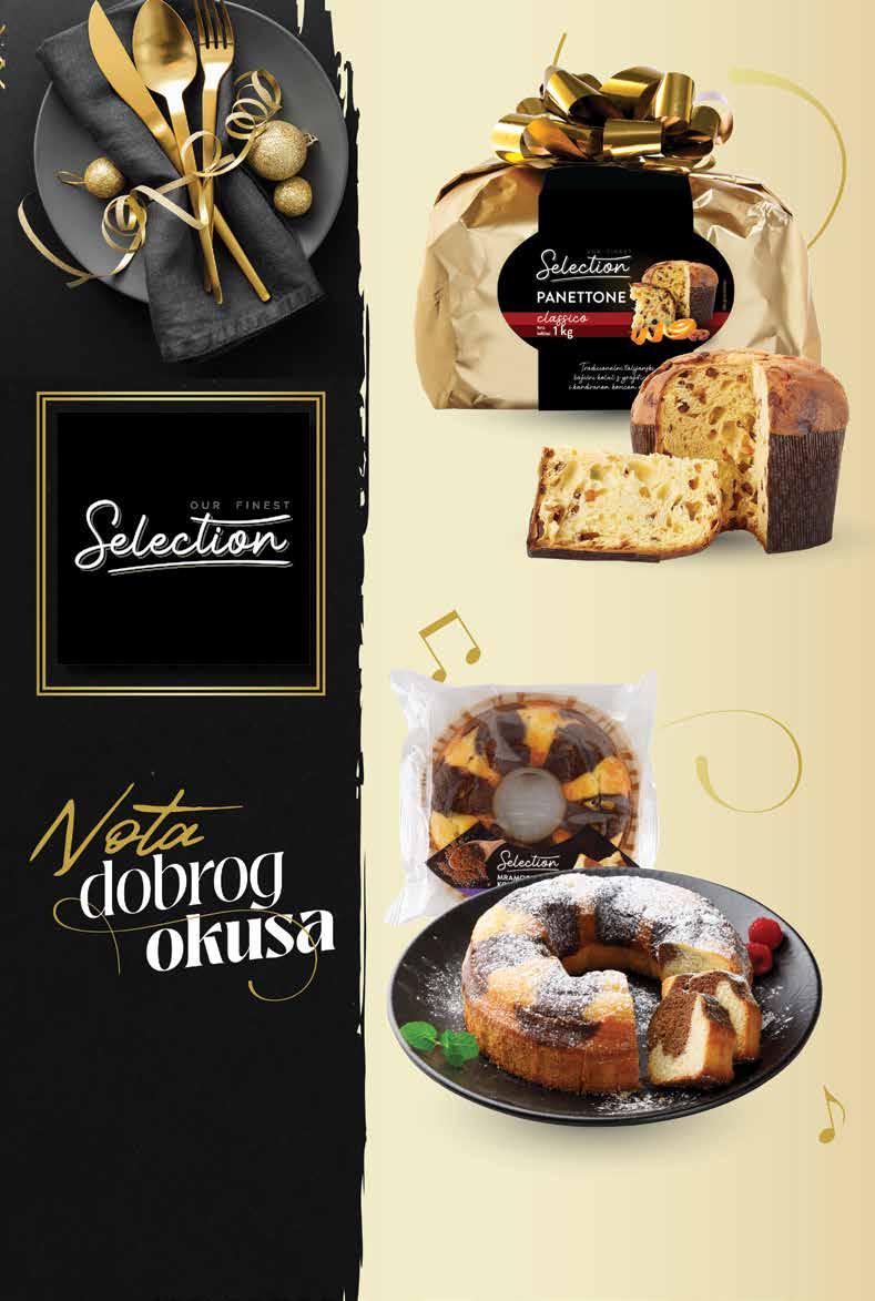 SELECTION Panettone 1 kg 5699 kn 7,56 € NOVO! NOVO! 1 kg SELECTION Mramorni kolač 400 g 1 kg = 49,98 kn 1 kg = 6,63 € 1999 kn 2,65 € Fotografije proizvoda ne moraju u potpunosti odgovarati stvarnom izgledu proizvoda. Kupnja je moguća samo u količinama primjerenim za kućanstvo. Sve navedene cijene izražene su u kunama i eurima s PDV-om. Fiksni tečaj konverzije €/kn: 7,53450. Ne odgovaramo za tiskarske pogreške. 28