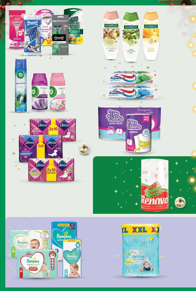 BABY CARE Vlažne maramice za djecu pakiranje 4x72 komada 1 pakiranje = 5,00 kn 1 pakiranje = 0,66 € VIOLETA Odabrani kuhinjski ručnici PAMPERS Pelene za djecu razne vrste pakiranje od 31 do 80 komada 1 kom = 1,50 - 3,87 kn 1 kom = 0,20 - 0,51 € RENOVA Kuhinjski ručnici Božićni motiv dvoslojini 1 rola PALMOLIVE Pjena za kupanje ili gel za tuširanje razne vrste 500 ml 1 l = 33,98 kn 1 l = 4,50 € LIBRESSE Higijenski ulošci invisible clip normal super ili goodnight pakiranje od 8 - 12, 2x 10 ili 2x 8 komada 1 kom = 0,70 - 1,75 kn 1 kom = 0,09 - 0,23 € AIRWICK odabrani proizvodi -35% WILKINSON odabrani proizvodi -40% 00,99 00,99 1699 kn 2,25 € -00% 00,99 00,99 VEĆ OD 899 kn 1,19 € 1399 kn 1,86 € 1399 kn 1,86 € 11999 kn 15,93 € 1999 kn 2,65 € komada 4x72 -00% 00,99 00,99 VEĆ OD 799 kn 1,06 € AQUAFRESH Odabrani proizvodi Fotografije proizvoda ne moraju u potpunosti odgovarati stvarnom izgledu proizvoda. Kupnja je moguća samo u količinama primjerenim za kućanstvo. Sve navedene cijene izražene su u kunama i eurima s PDV-om. Fiksni tečaj konverzije €/kn: 7,53450. Ne odgovaramo za tiskarske pogreške. 30