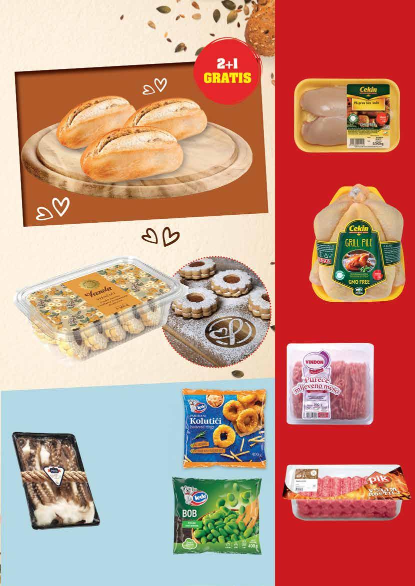 svježe MESO Nove ponude pogledajte na: www.ribola.hr 3 1 € = 7,53450 kn RIBOLA IMA PLAN da štediš svaki dan! Štedidan!svaki € hiper super hiper super hiper super -20% 4,64 €/34,96 kn 371 27 95 -18% 4,38 €/33,00 kn 358 26 97 VINDIJA Cekin pileća prsa bez kože 1 kg VINDIJA Cekin Grill pile 1 kg VINDIJA Vindon pureće mljeveno meso 500 g PIK Ćevapčići grill 600 g POVOLJNA CIJENA 49 95 663 POVOLJNA CIJENA 23 96 318 -15% 7,83 €/59,00 kn 663 49 95 -23% 3,78 €/28,48 kn 291 21 93 -28% 2,78 €/20,95 kn 199 14 99 PERLA Krakovi za peku i salatu 1 kg Pecivo žemljica 55 g Vjenčić marelica 300 g LEDO Panirani kolutići lignje 400 g LEDO Bob 400 g POVOLJNA CIJENA 318 23 96
