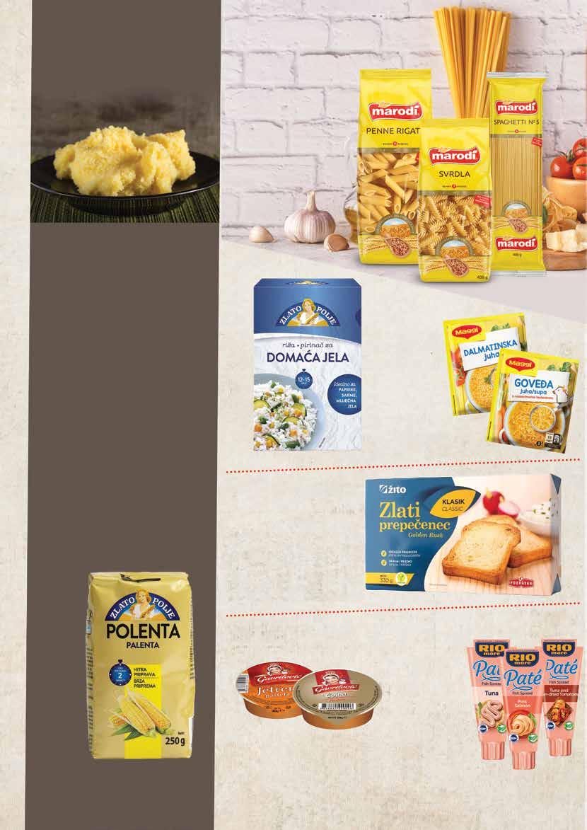Vaš najbolji susjed! 8 1 € = 7,53450 kn Kremasta PALENTA! ŽITO Zlati prepečenec dvopek 330 g -27% 2,39 €/17,98 kn 172 12 99 -19% 0,66 €/4,98 kn 053 3 99 GAVRILOVIĆ Pašteta čajna, jetrena 30 g RIO MARE Pašteta od tune odabrane vrste 100 g -44% 3,32 €/24,98 kn 186 13 99 -16% 0,79 €/5,98 kn 066 4 99 ZLATO POLJE Palenta 250 g ZLATO POLJE Riža 1 kg -29% 3,58 €/26,98 kn 252 18 99 -35% 1,86 €/13,98 kn 119 8 99 MARODI Tjestenina odabrane vrste 400 g -33% 0,59 €/4,48 kn 040 2 99 MAGGI Juha u vrećici Goveđa 37 g Dalmatinska 40 g