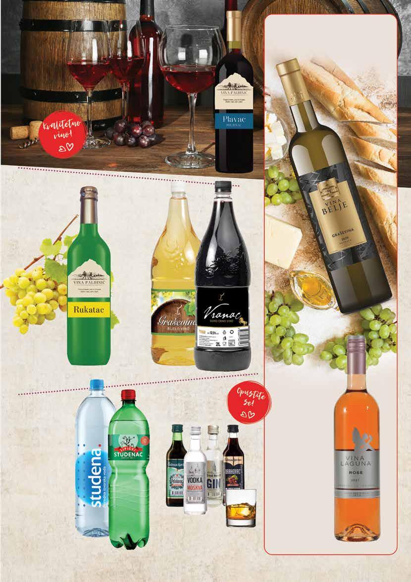 1 € = 7,53450 kn Nove ponude pogledajte na: www.ribola.hr 13 -24% 0,79 €/5,98 kn 060 4 49 LIPIČKI STUDENAC Prirodna mineralna gazirana voda 1,5 l STUDENA Prirodna voda 1,5 l -20% 8,36 €/62,98 kn 663 49 99 POVOLJNA CIJENA 106 7 99 DALMACIJAVINO Alkoholno piće • Odabrane vrste 0,1 l VINA BELJE Vino Graševina • Vrhunsko vino 0,75 l -21% 5,04 €/37,98 kn 398 29 99 VINA LAGUNA Vino Rose • Kvalitetno vino 0,75 l -18% 3,58 €/26,98 kn 292 21 99 VINA PALIHNIĆ Vino Plavac Pelješac • Kvalitetno vino 1 l -23% 3,45 €/25,98 kn 265 19 99 VINA PALIHNIĆ Vino Rukatac 1 l POVOLJNA CIJENA 225 16 99 ULTRA PLUS Vino • Graševina • Vranac 2 l hiper super hiper super hiper super hiper