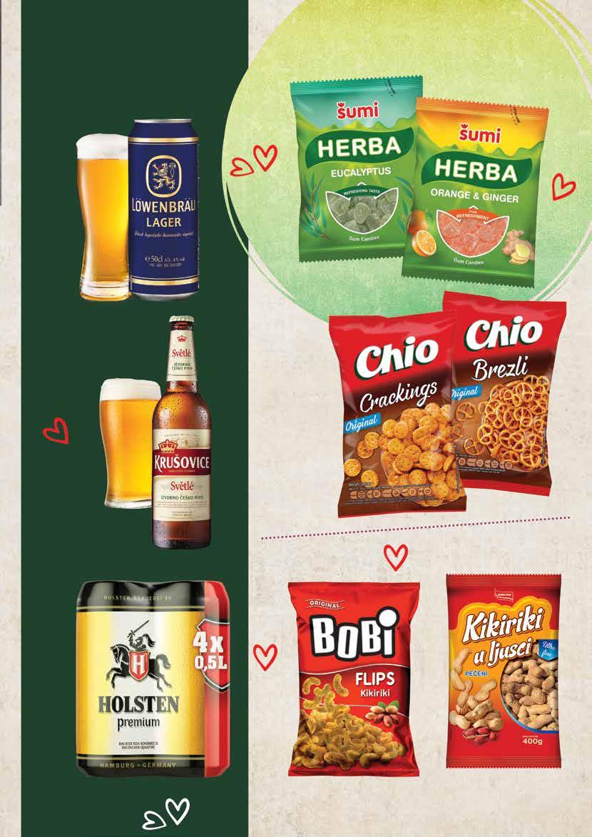 Nove ponude pogledajte na: www.ribola.hr 11 1 € = 7,53450 kn Pivo i GRICKALICE ULTRA kvaliteta ULTRA PLUS Kikiriki ljuska 400 g -17% 1,92 €/14,48 kn 159 11 99 -28% 0,93 €/6,98 kn 066 4 99 BOBI Flips s kikirikijem 90 g POVOLJNA CIJENA 080 5 99 ŠUMI Herba gumeni bomboni • Naranča i đumbir • Eukaliptus 90 g POVOLJNA CIJENA 080 5 99 CHIO Grickalice • Pereci 80 g • Kikiriki 100 g POVOLJNA CIJENA 090 6 79 POVOLJNA CIJENA 099 7 46 LOWENBRAU Pivo 0,5 l KRUŠOVICE Pivo 0,5 l HOLSTEN Pivo 4x0,5 l POVOLJNA CIJENA 305 22 99 hiper super hiper hiper hiper super Volimo grickanje! Kojiokus više volite?