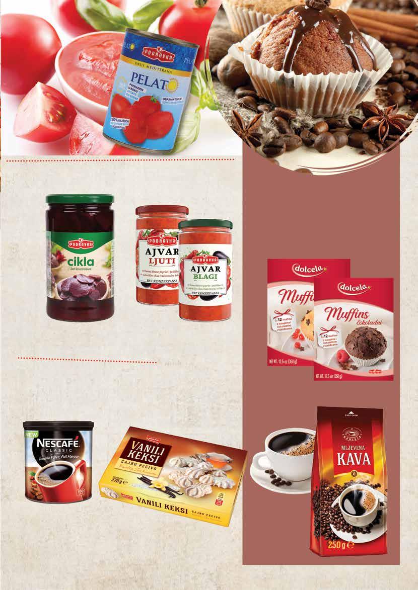 1 € = 7,53450 kn Nove ponude pogledajte na: www.ribola.hr 9 kava i MUFFINi! -33% 1,79 €/13,48 kn 119 8 99 PODRAVKA Pelat rajčice ocijeđena masa = 240 g 400 g PODRAVKA Smjesa za muffine original, s čokoladom 350 g -20% 3,18 €/23,98 kn 252 18 99 NESCAFE Instant kava 200 g -39% 9,16 €/68,98 kn 557 41 99 MOMENTO Mljevena kava 250 g -16% 2,39 €/17,98 kn 199 14 99 PODRAVKA Cikla kisela ocijeđena masa = 360 g 660 g POVOLJNA CIJENA 172 12 99 PODRAVKA Ajvar blagi, ljuti 350 g POVOLJNA CIJENA 166 12 49 Punooo povrća! ilikavaipak i keksi? hiper super hiper super hiper super ULTRA PLUS Vanilin keks 270 g -15% 1,72 €/12,98 kn 146 10 99 ULTRA kvaliteta
