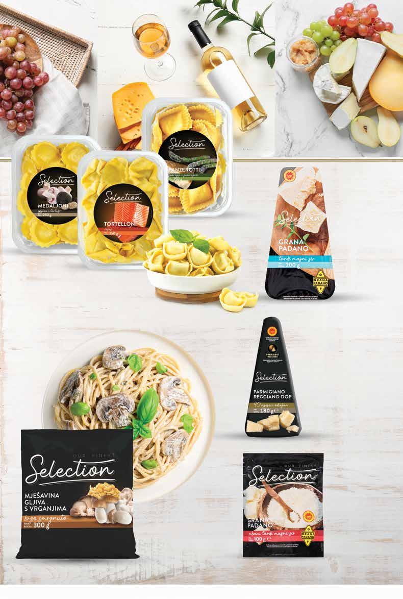 2 39 € 18.01 kn 1 kg = 7,97 € / 60,03 kn 300 g 2 10 € 15.82 kn 1 kg = 21,00 € / 158,20 kn 100 g 4 91 € 36.99 kn 1 kg = 27,28 € / 205,50 kn 180 g 2 89 € 21.77 kn 1 kg = 11,56 € / 87,08 kn 250 g 3 99 € 30.06 kn 1 kg = 19,95 € / 150,30 kn 200 g SELECTION Grana Padano ribani SELECTION Grana Padano SELECTION Punjena tjestenina s lososom, gljivama i tartufima ili šparogama i sirom svježe SELECTION Parmigiano Reggiano DOP SELECTION Mješavina gljiva s vrganjima smrznuto hlađeno smrznuto