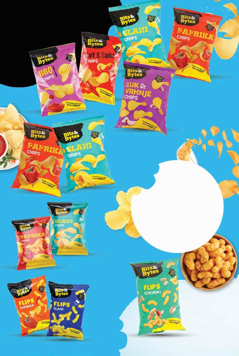 BITS&BYTES Čips razne vrste BITS&BYTES Čips slani ili paprika BITS&BYTES Flips kukuruzni, slani ili paprika BITS&BYTES Flips s kikirikijem 0 53 € 3.99 kn 1 kg = 5,89 € / 44,33 kn 90 g 0 68 € 5.12 kn 1 kg = 4,53 € / 34,13 kn 150 g 0 43 € 3.24 kn 1 kg = 10,75 € / 81,00 kn 40 g Prilika tjedna!-00% 0.00 € / 00.00 kn Prilika vikenda! Super prilika! 0 93 € 7.01 kn 150 g 1 kg = 6,20 € / 46,73 kn BITS&BYTES Čips BBQ ili Hot & Spicy rebrasti 1 06 € 7.99 kn 1 kg = 7,07 € / 53,27 kn 150 g BITS&BYTES Čips slani ili paprika 1 19 € 8.97 kn 1 kg = 5,95 € / 44,85 kn 200 g MALA SLANA ZADOVOLJSTVA!
