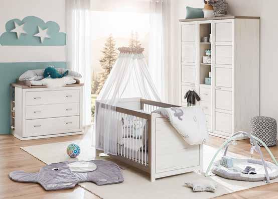 9: Dječji krevetić Adrian, masivno drvo bukve, boja: bijela, mogućnost spuštanja stranice, s podnicom podesivom po visini, 60x120 cm. Komoda za previjanje s kadicom Lisabon, drvo, boja: bijela, 4 ladice, kotačići omogućuju lakše pomicanje, 76x97x47 cm, boja: natur 219,99 189,99 € 1.657,51 1.431,48 kn (87980010/01;30300124/01-02)