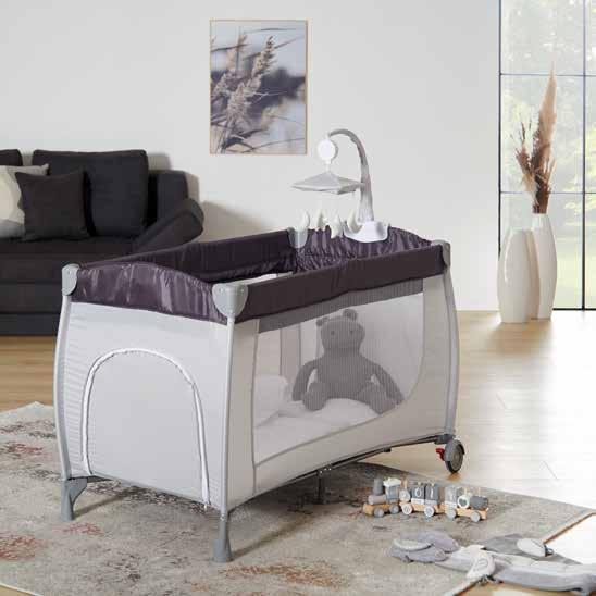 7: Prijenosni krevetić, metal/umjetna vlakna, s tvrdom podlogom, bočnim otvorom i džepom, uključen je i vrtuljak s igračkama te torba za transport, 120x60x77 cm. (58720003/01)