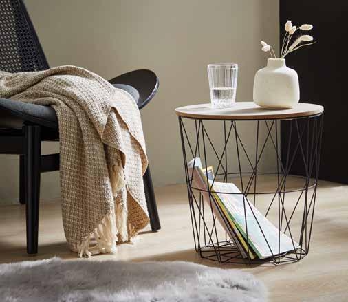 41x40 cm. Stolić, metal/MDF, boja: crna/natur, Ø 41,5x52,8 cm.