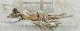 slika, masivno drvo/platno, motiv žene, 70x180 cm