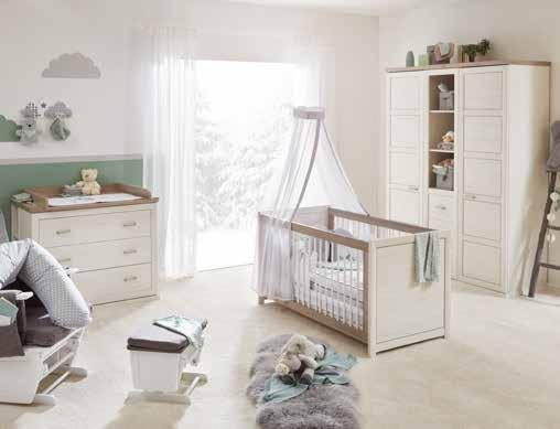 10: Dječja soba Michi, masivno drvo/MDF, boja: bijela. Dječji krevetić, s uključenom podnicom podesivom po visini, odvojive letvice, 70x140 cm. Komoda za previjanje, 109x94x52,4 cm 329,00 € 2.478,85 kn*. Ormar, 131,5x198x52,4 cm. 399,00 € 3.006,27 kn* (03450085/01-02,04)