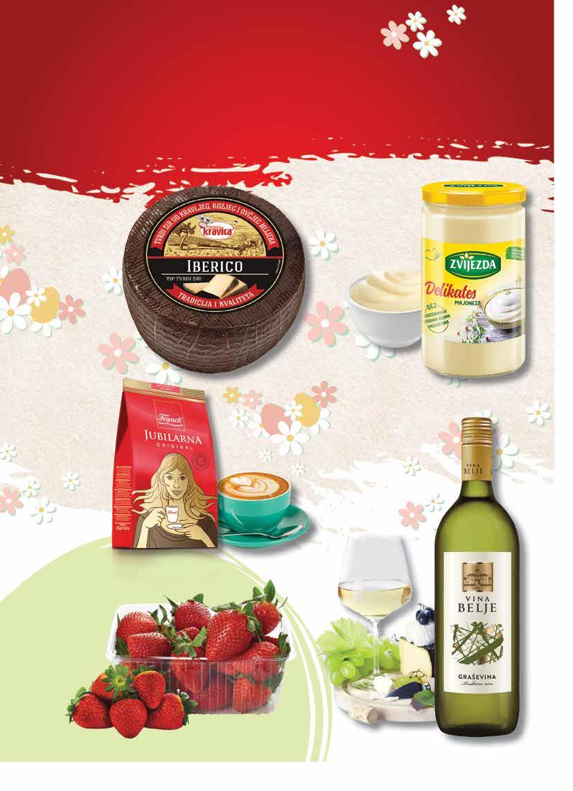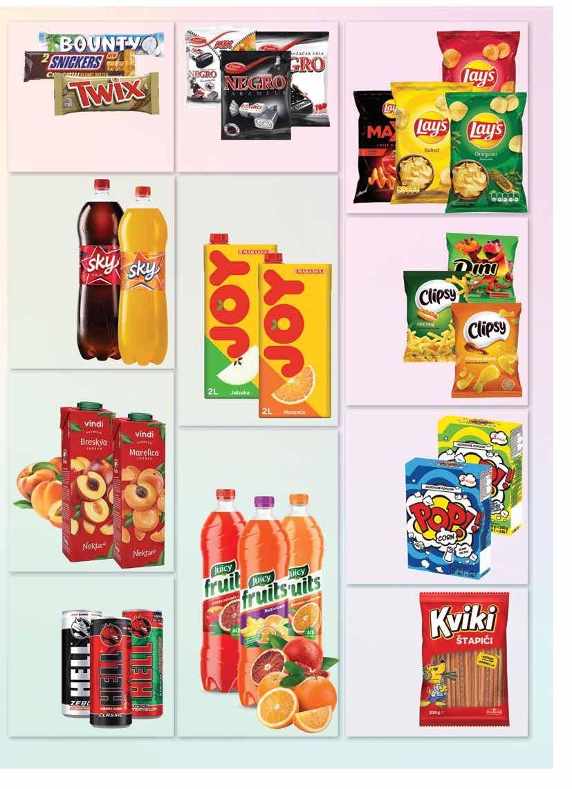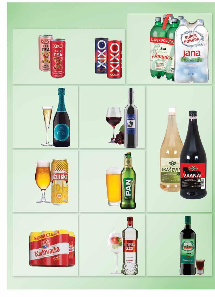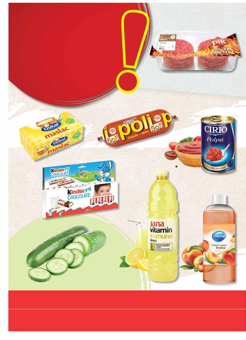 25.03. - 27.03.2024. SUPER PONUDA za početak tjedna JANA Vitamin Immuno - limun PET 1,5 l 1 l = 0,97 € KINDER Čokolada 150 g 1 kg = 11,67 € Krastavac salatar 1 kom CIRIO Sjeckana rajčica 400 g 1 kg = 2,48 € CHARME Tekući sapun Breskva 1 l DUKAT Maslac 250 g 1 kg = 9,16 € POLI Pileća salama Mini 220 g 1 kg = 6,77 € PIK Grill burger 400 g 1 kg = 6,98 € 2 29 0 99 0 89 0 65 2 79 145 175 149 PLAĆANJA KARTICAMA Kartice koje prihvaćamo: Visa, Maestro, Master Card, Diners IZDAVANJE