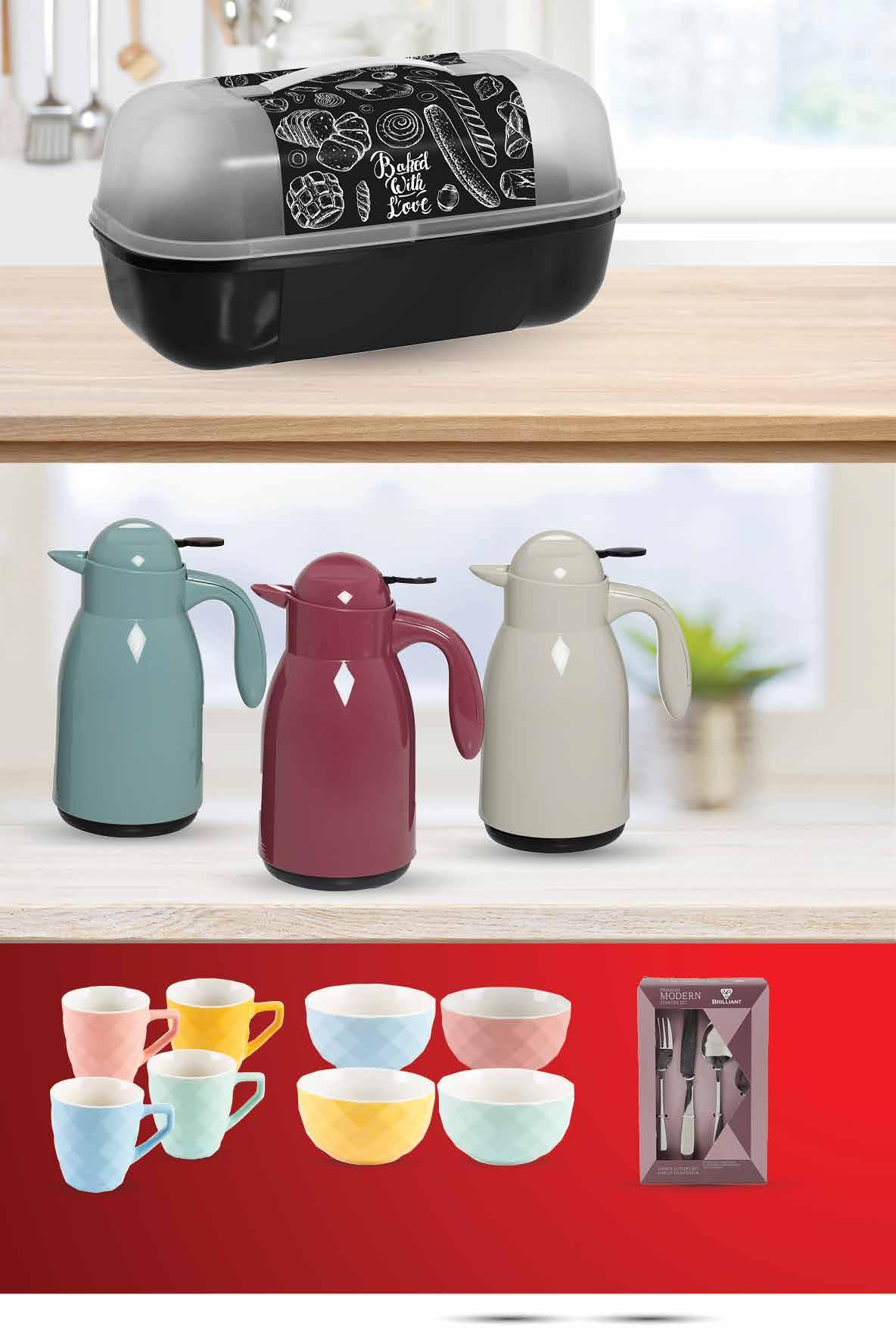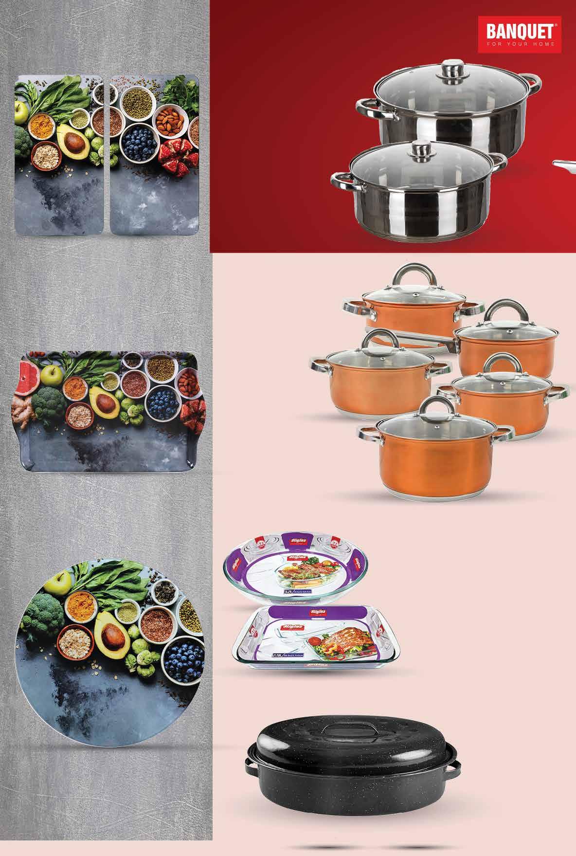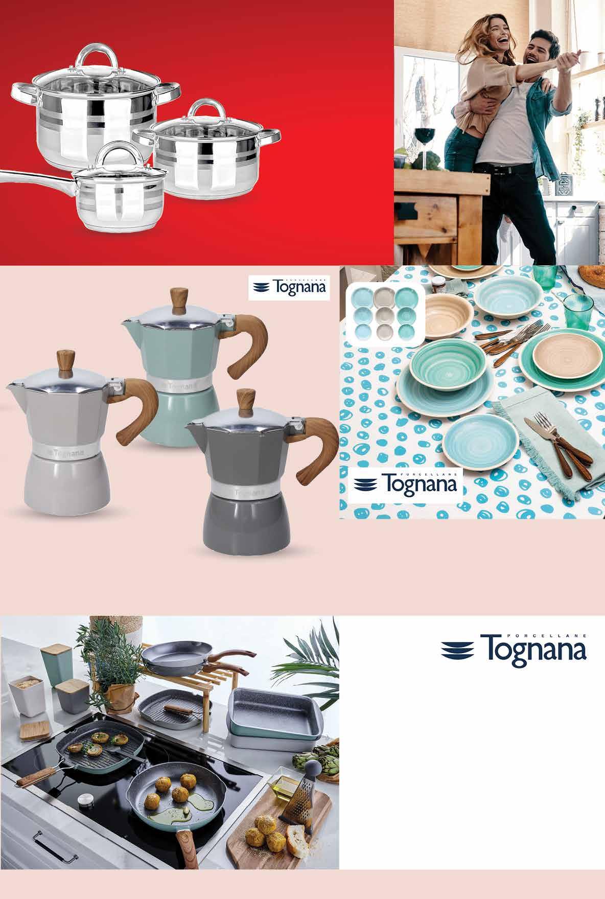• materijal: aluminij • bakelitna ručka otporna na visoke temperature • pogodna za sve štednjaka uključujući i indukciju • cca Ø 24 cm 139,99Grill tava • dimenzije cca 28x28 cm 18,58 € 129,99Pekač • dimenzije cca 35x25 cm 17,25 € 129,99Wok tava • cca Ø 28 cm 17,25 € 119,99Tava • cca Ø 28 cm 15,93 € 69,99Tava za palačinke • cca Ø 25 cm 9,29 € 00,99 21999 kn 29,20 € 00,99 9999 kn 13,27 € pogodno za indukciju 00,99 9999 kn 13,27 € TOGNANA Set tanjura • sastoji se od 6 plitkih tanjura 27 cm • 6 x dubokih tanjura 21 cm i 6 x desertnih tanjura 19 cm 00,99 25999 kn 34,51 € Set posuda za kuhanje • od nehrđajućeg čelika • u setu posude za kuhanje sa staklenim poklopcima • dimenzije 14 cm - 1,3 l • 18 cm - 2,6 L i 22 cm - 4,7 l TOGNANA Kafetijera • za 6 šalica 18 - dijelni set Fotografije proizvoda ne moraju u potpunosti odgovarati stvarnom izgledu proizvoda. Kupnja je moguća samo u količinama primjerenim za kućanstvo. Sve navedene cijene izražene su u kunama i eurima s PDV-om. Fiksni tečaj konverzije €/kn: 7,53450. Ne odgovaramo za tiskarske pogreške. 51